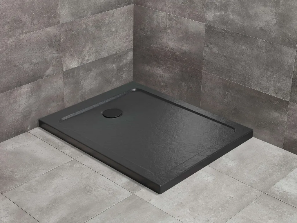 Doros Stone F szögletes lapos fekete zuhanytálca 100x80 fekete, ajándék szifonnal