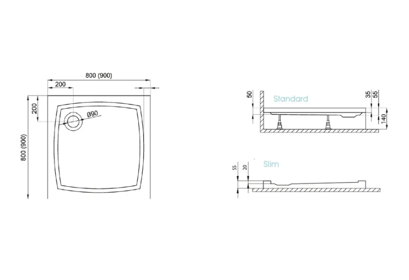 Nero C Slim szögletes lapos zuhanytálca 80x80