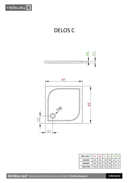Delos C szögletes lapos zuhanytálca 90x90 fehér ajándék szifonnal