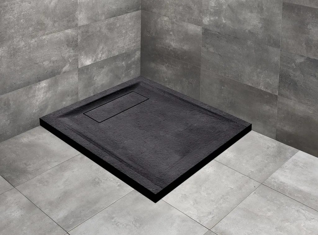 Doris C lapos fekete betonszürke zuhanytálca 90x90 fekete, ajándék szifonnal