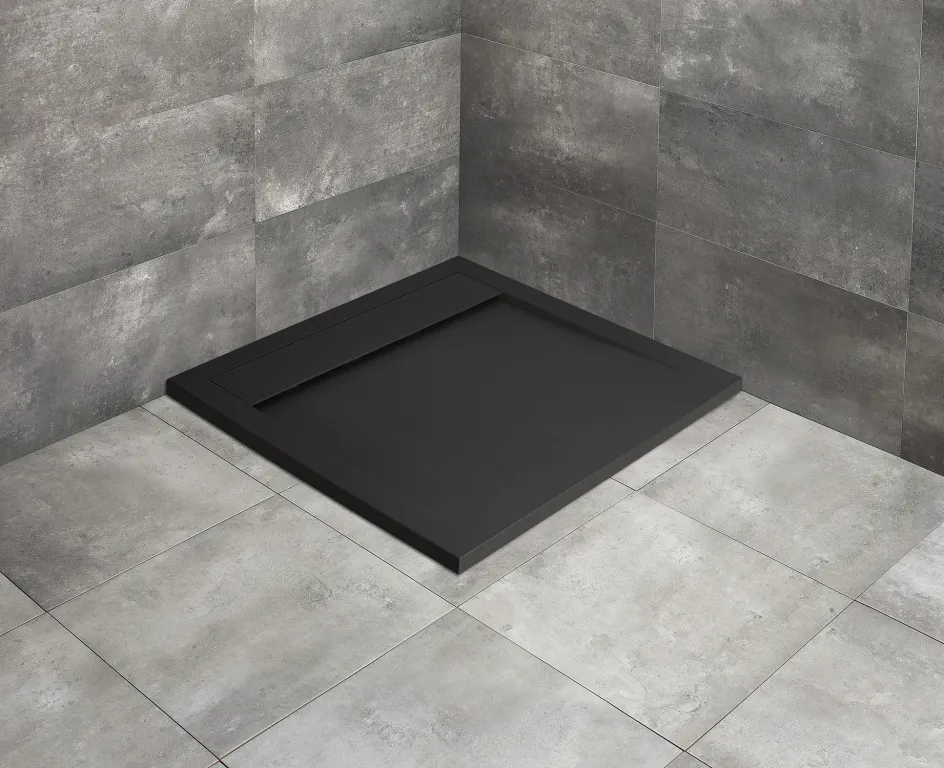 Teos C szögletes lapos fekete zuhanytálca 100x100 fekete, ajándék szifonnal