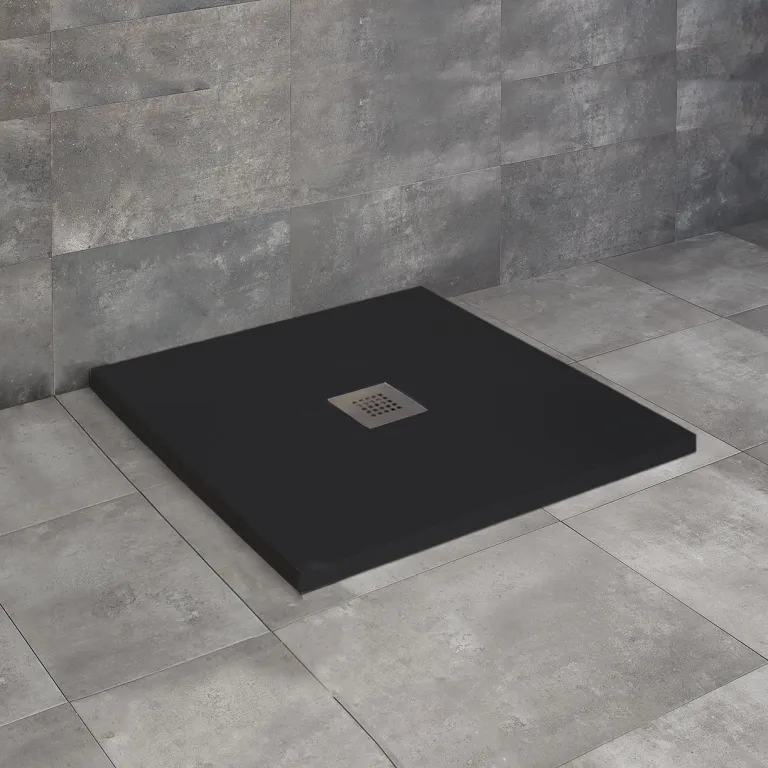 Kios C szögletes lapos fekete zuhanytálca 90x90 fekete, ajándék szifonnal